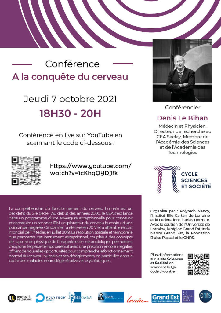Résumé : La compréhension du fonctionnement du cerveau humain est un des défis du 21ième siècle. Au début des années 2000, le CEA s’est lancé dans un programme d’une envergure exceptionnelle pour concevoir et construire un scanner IRM « explorateur du cerveau humain » d’une puissance inégalée. Ce scanner a été livré en 2017 et a atteint le record mondial de 11,7 teslas en juillet 2019. La résolution spatiale et temporelle que permettra cet instrument exceptionnel, couplée à des concepts de rupture en physique de l’imagerie et en neurobiologie, permettent d’explorer l’espace-temps cérébral avec une précision encore inégalée, offrant de nouvelles opportunités pour comprendre le fonctionnement normal du cerveau humain et ses dérèglements, en particulier dans le cadre des maladies neurodégénératives et psychiatriques.