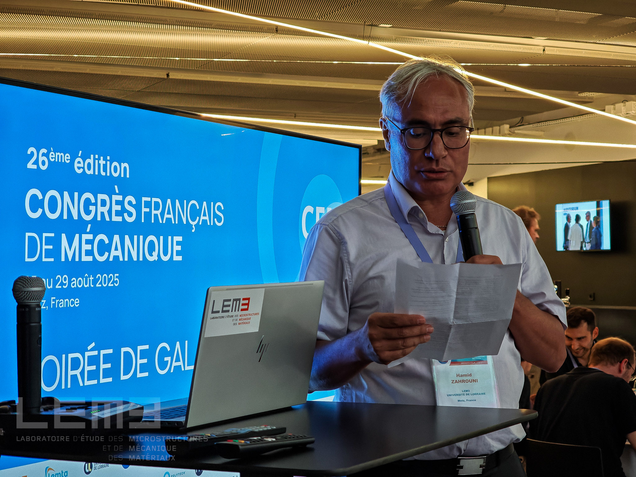 Le Congrès Français de Mécanique (CFM) 2025 s’est tenu du 25 au 29 août 2025 à Metz, et a réuni l’ensemble de la communauté de la Mécanique dans les domaines de la recherche, de l’enseignement et de l’industrie, ainsi que des partenaires institutionnels. Organisé par le Laboratoire d’Étude des Microstructures et de Mécanique des Matériaux (LEM3, Université de Lorraine, CNRS, Arts et Métiers) et le Laboratoire Énergies & Mécanique Théorique et Appliquée (LEMTA, Université de Lorraine, CNRS), cet événement majeur de la communauté mécanique française a rassemblé plus de 850 congressistes autour d’échanges scientifiques, de temps conviviaux et de moments culturels.