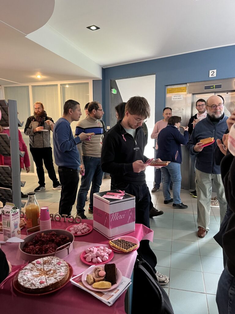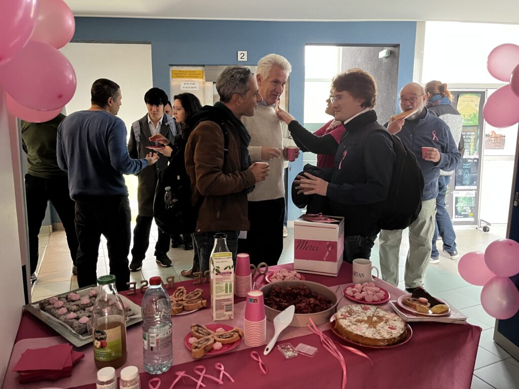 Pour sensibiliser à la lutte contre le cancer du sein et soutenir la recherche, l’ensemble du personnel était convié à déguster des gâteaux maison tout roses confectionnés par des membres du laboratoire. Chaque personne avait la possibilité de faire un don en échange d’un petit ruban rose 🎀