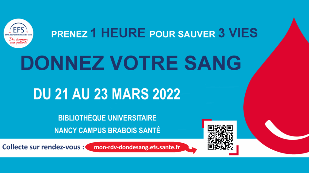 Réservez votre créneau horaire dès maintenant : https://mon-rdv-dondesang.efs.sante.fr/collecte/46300/sang/21-03-2022
