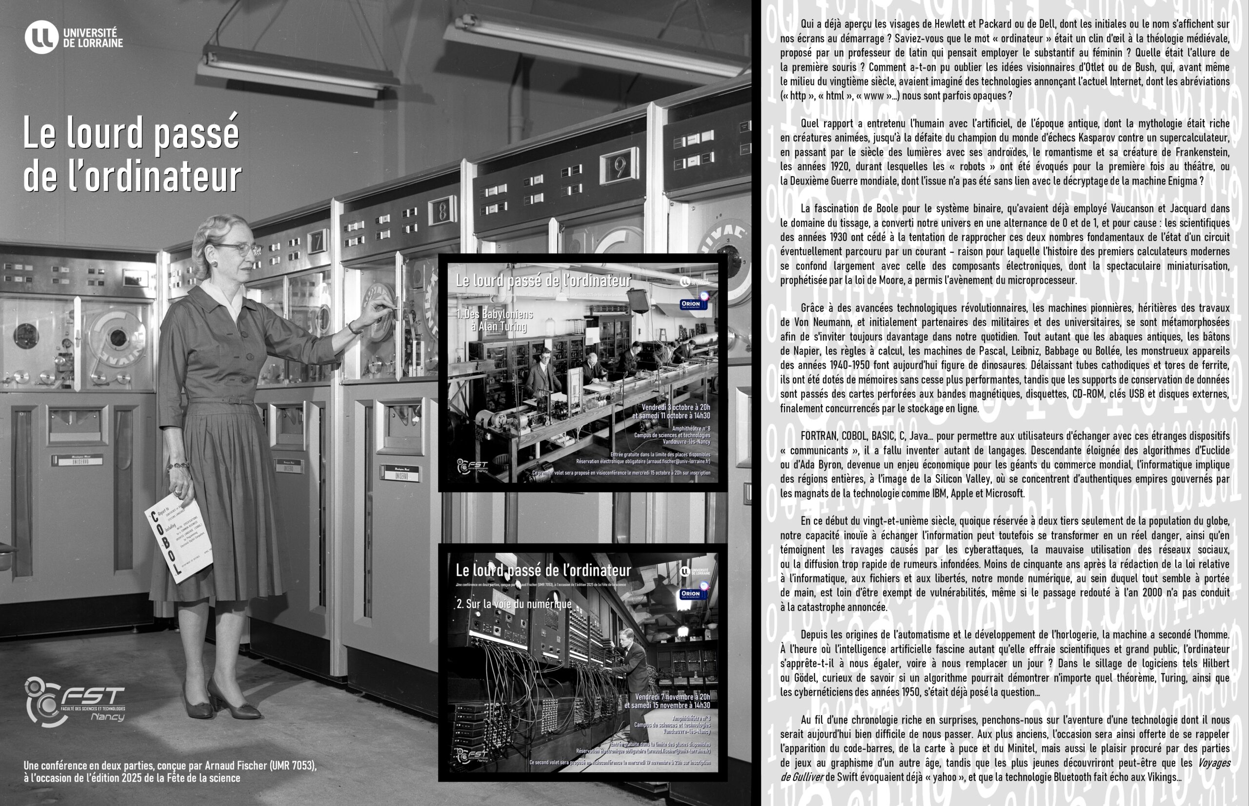 À l’occasion de l’édition 2025 de la Fête de la science, dédiée à la thématique « Intelligence(s) », Arnaud Fischer vous convie à un programme en deux parties, intitulé « Le lourd passé de l’ordinateur ».