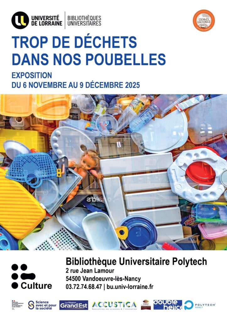 La bibliothèque universitaire Ingénieurs Polytech Nancy vous invite à découvrir l’exposition « Trop de déchets dans nos poubelles » du 6 novembre au 10 décembre 2025.