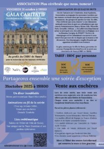 L’association Plus cérébrale que nous tumeur ! organise une soirée de gala vendredi 31 octobre à 19h dans les Grands Salons de l’hôtel de ville de Nancy pour soutenir la recherche sur les tumeurs cérébrales.