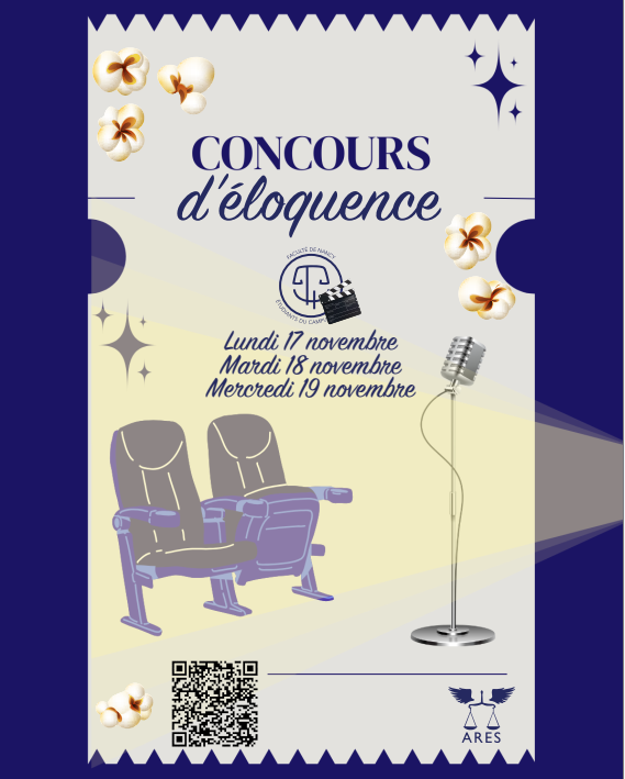 C’est un tournoi en plusieurs manches où 2 étudiant.e.s s’affrontent dans une joute verbale sur un sujet commun mais avec des positions différentes devant des jurys d’exception comme des professeurs, des professionnels ou encore Monsieur le Doyen de la faculté.