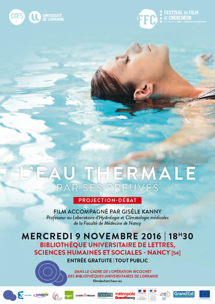 Grâce à la participation du Professeur Gisèle Kanny, nous aborderons dans le débat qui suivra la projection la question de « l’eau thermale par ses preuves ».