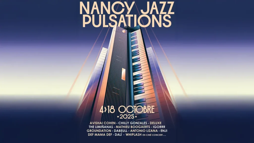 Du 4 au 18 octobre 2025, Nancy vibrera au rythme du jazz et des musiques actuelles pour la 52ème édition du festival Nancy Jazz Pulsations. Et comme chaque année, le NJP 2025 fait vibrer Nancy et sa métropole au rythme d’une programmation audacieuse et plurielle. Jazz, électro, rock, rap, reggae, musiques du monde… tous les styles s’y rencontrent dans un grand élan de créativité et de plaisir partagé.