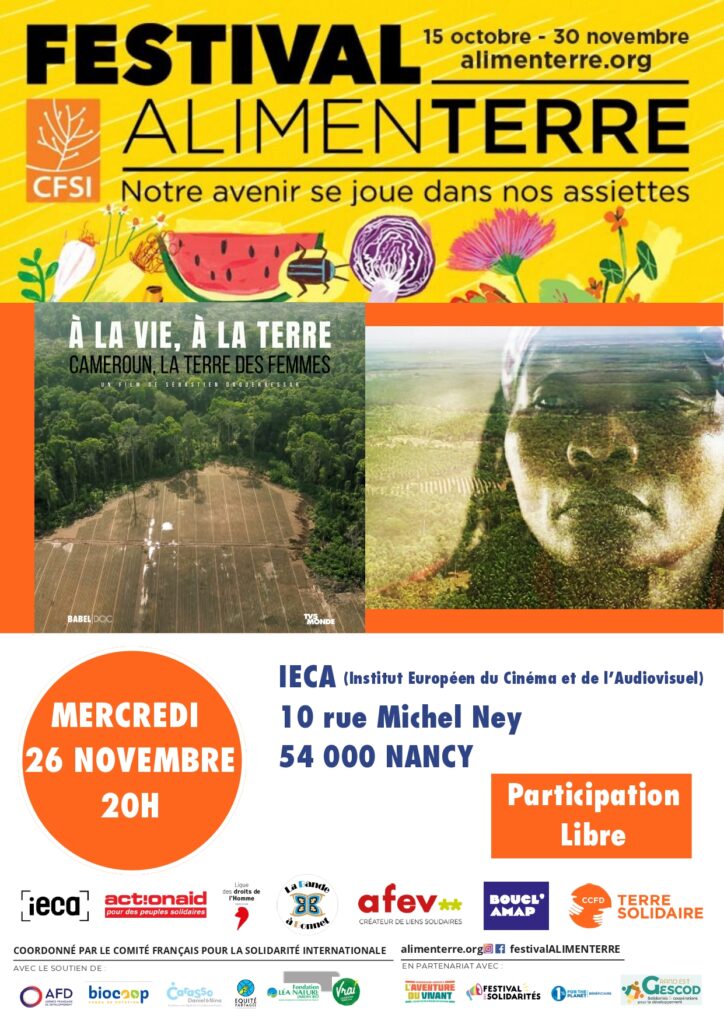Dans le cadre du Festival AlimenTerre, le CCFD-Terre Solidaire 54 est heureux de vous inviter à la projection du film : À la Vie, à la Terre Cameroun, la terre des femmes (2023) de Sébastien Daguerressar.