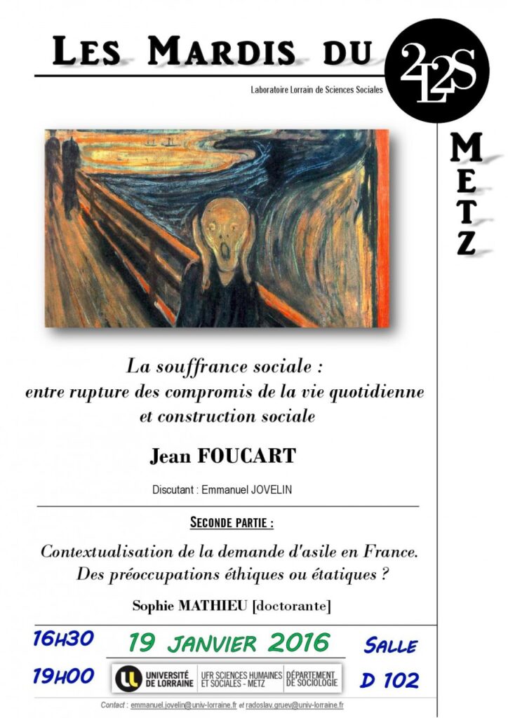 En première partie nous aurons le plaisir de recevoir Jean FOUCART de la Haute Ecole Louvain en Hainaut, Charleroi, Belgique, qui interviendra sur la thématique de la souffrance sociale.